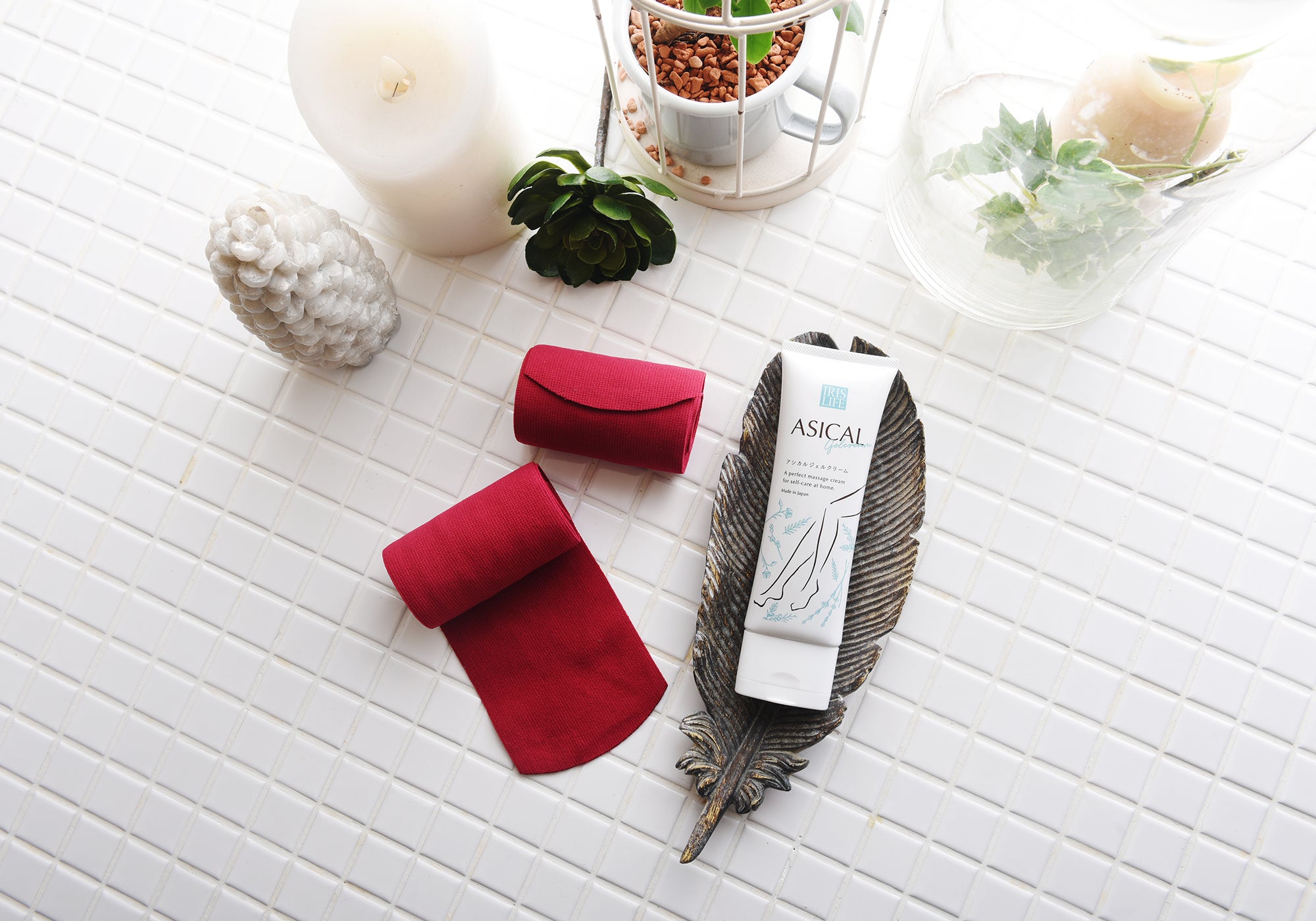 磁気ネックレス、着圧バンテージ、足半サンダル。