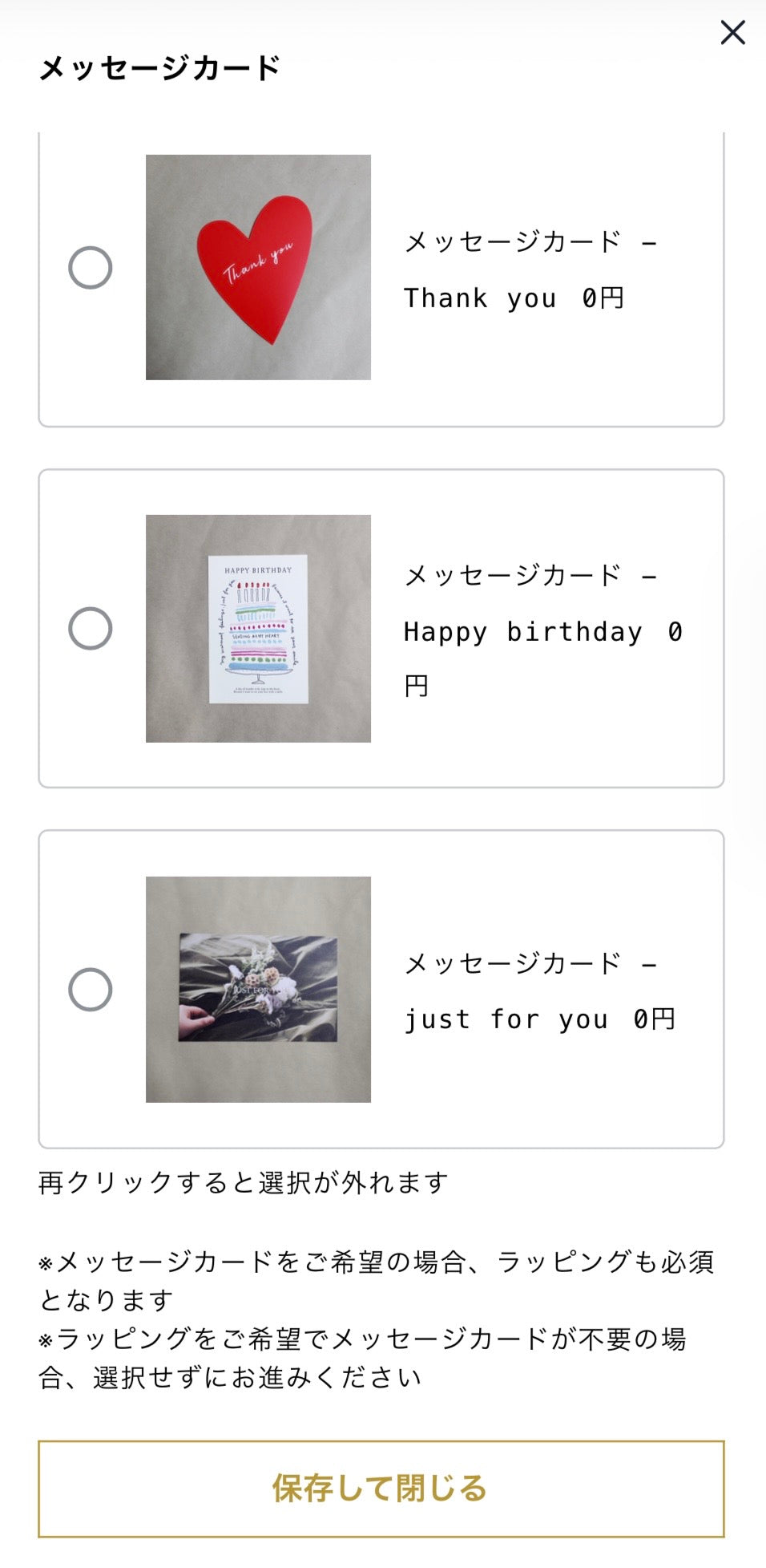 ※メッセージカードが不要な場合は、選択せずに「保存して閉じる」のボタンをクリックしお進みください