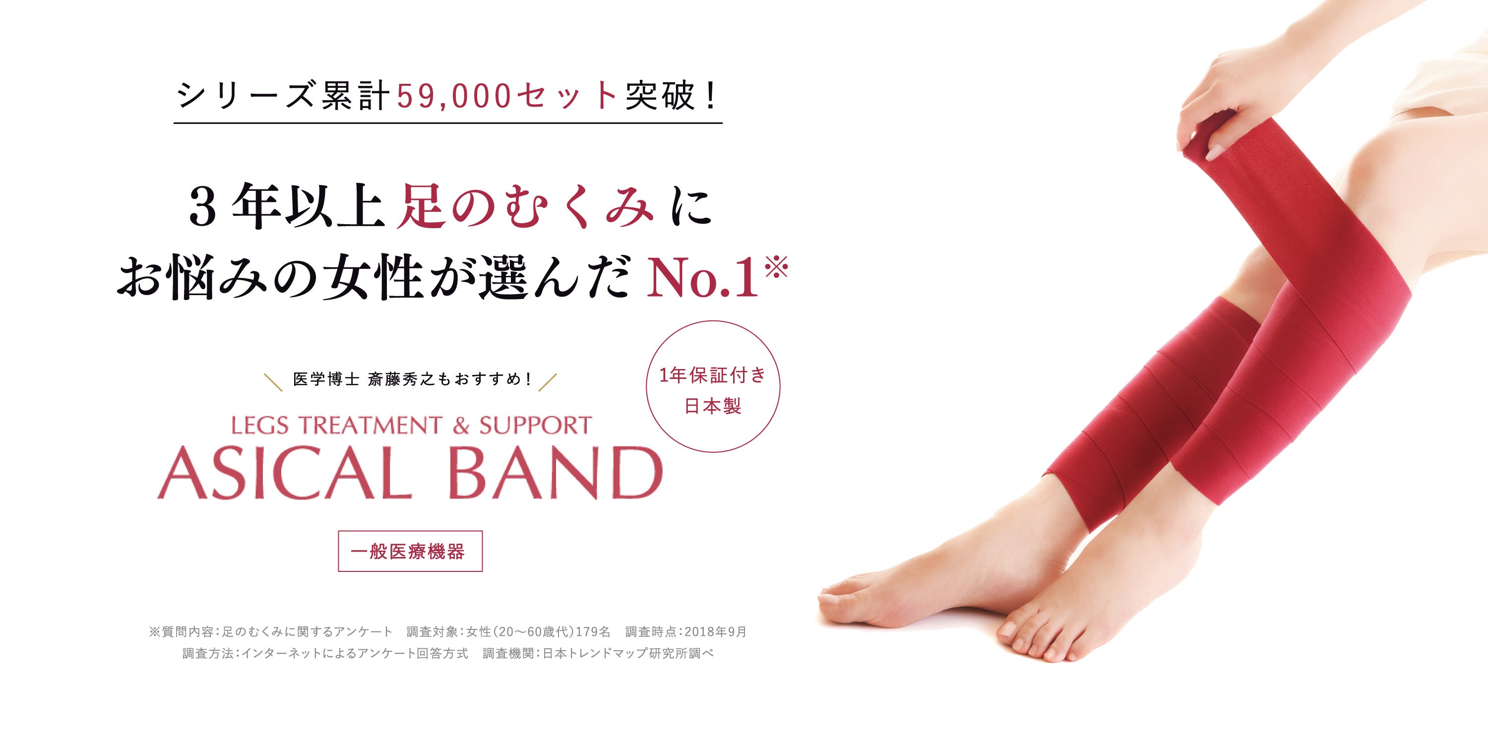 世界5カ国で特許取得の素材でつくった<一般医療機器>の弾性バンテージ、「アシカルバンド」。高い着圧と伸縮性を兼ね備えた素材で「強い着圧」を実現しながらも窮屈感を感じにくい、巻くタイプのふくらはぎ着圧バンドです。お好みの着圧で「脚のむくみ」・「脚の疲れ」を改善します。