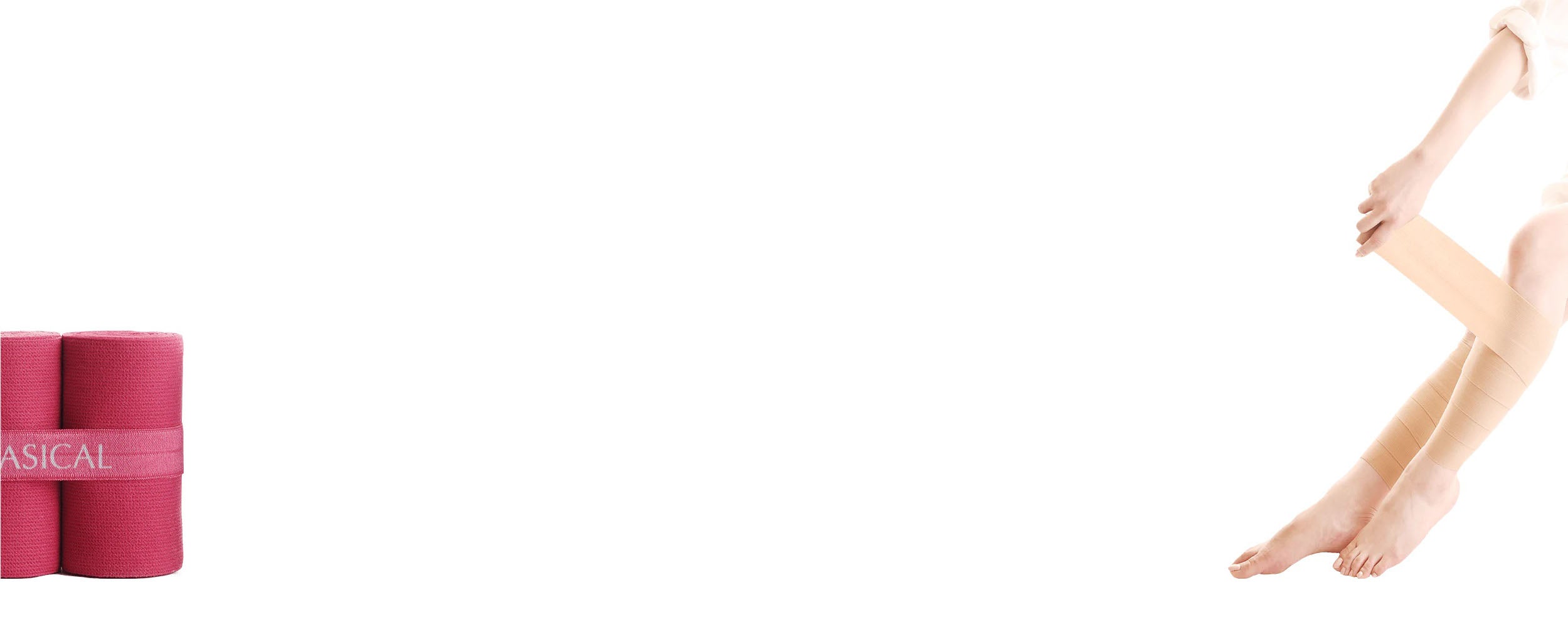独自の素材で作った、〈一般医療機器〉の弾性バンテージ「アシカルバンド」。高い圧着と伸縮性を兼ね備えた素材で「強い圧着」を実現しながらも、窮屈感を感じにくい巻くタイプのふくらはぎ圧着バンドです。