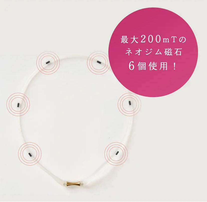 他の磁気治療器や金属製のネックレスとの重ね着けはお控え下さいますようお願いいたします。