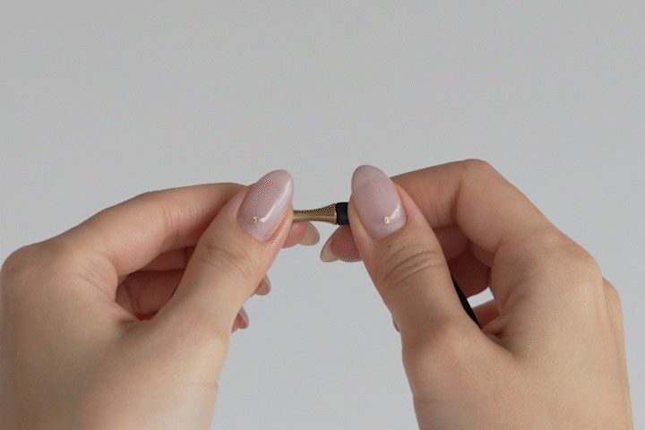 折るようにして外し、差し込むだけで装着できる“ワンタッチ留め具”を採用。毎日の着け外しが簡単に行える、ユーザビリティに配慮した設計です。外れにくく、しっかりと固定される安心構造で、日中も快適。